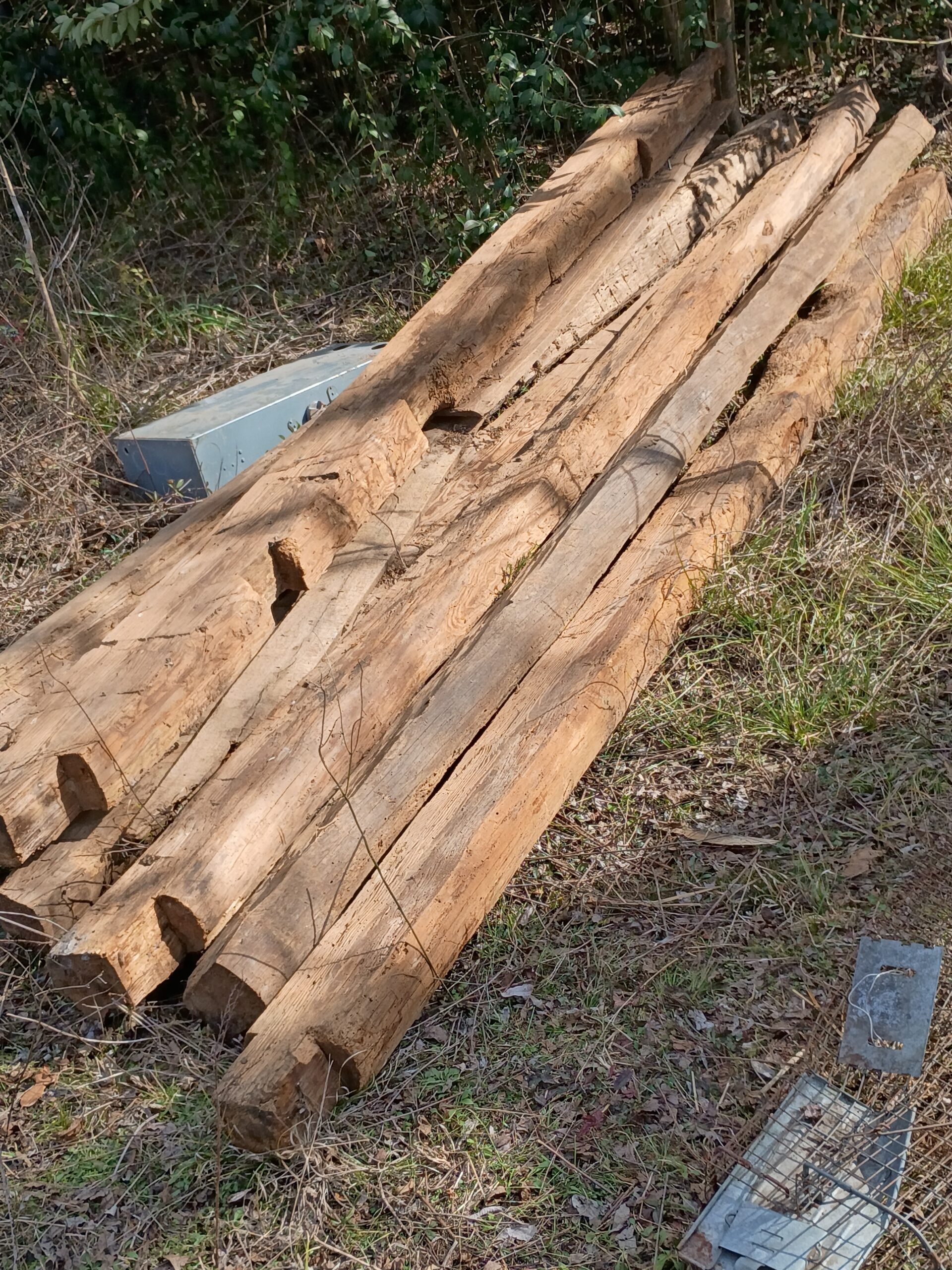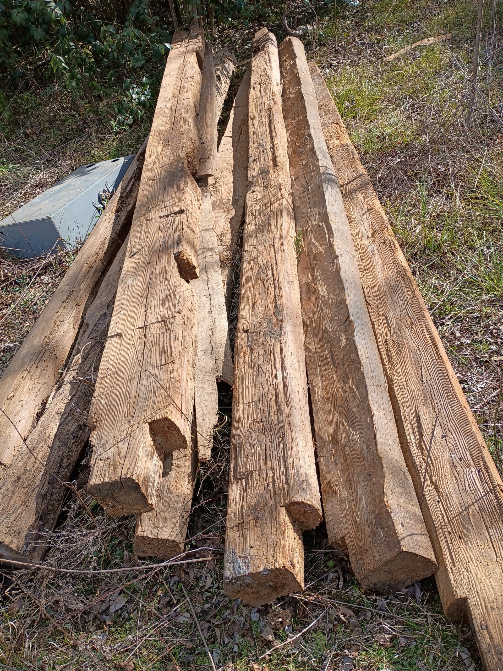 These are beautiful white oak beams from Alabama. These highly valued beams are being reclaimed from an 1800’s ranch and 8″x8″x20′ Hand Hewn White Oak Beams circa 1830’s.